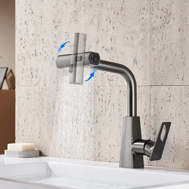 Kaiping Manufacturer Deck Mounted Hot and Cold Faucet Taps for Bathroom Sinks with Pull Out Sprayer